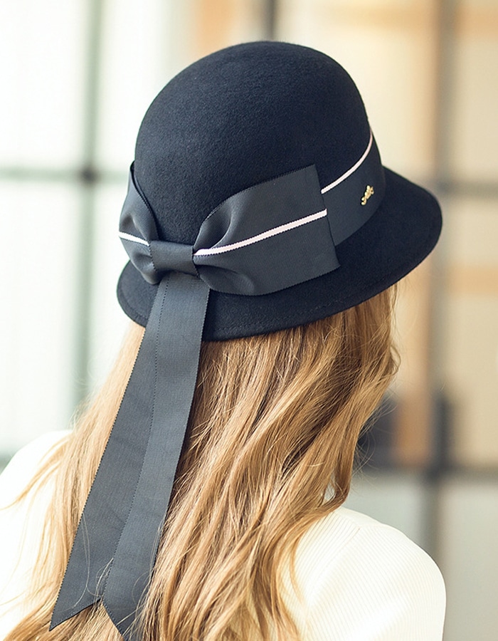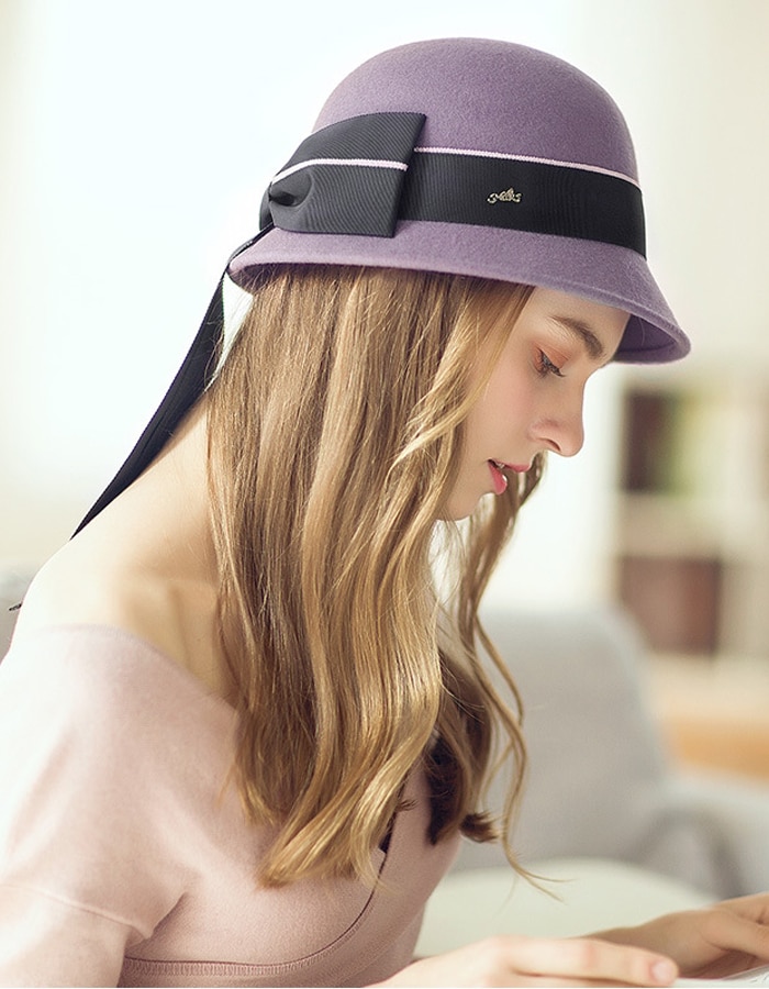 A large bow made of ribbon is decorated on the back of the hat, smooth and textured. Show the elegance and unique personality of women.